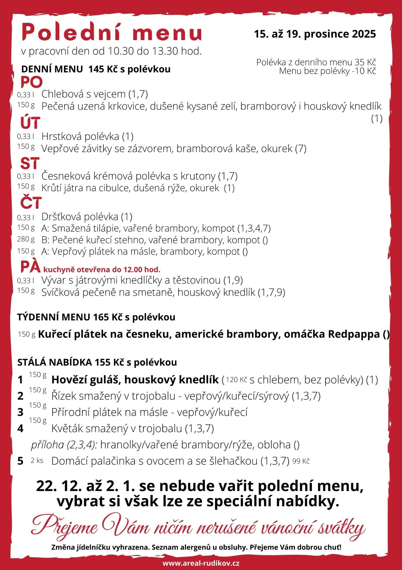 ... menu, čerstvé bagety, párek v rohlíku, ke kávě třeba zákusek ...