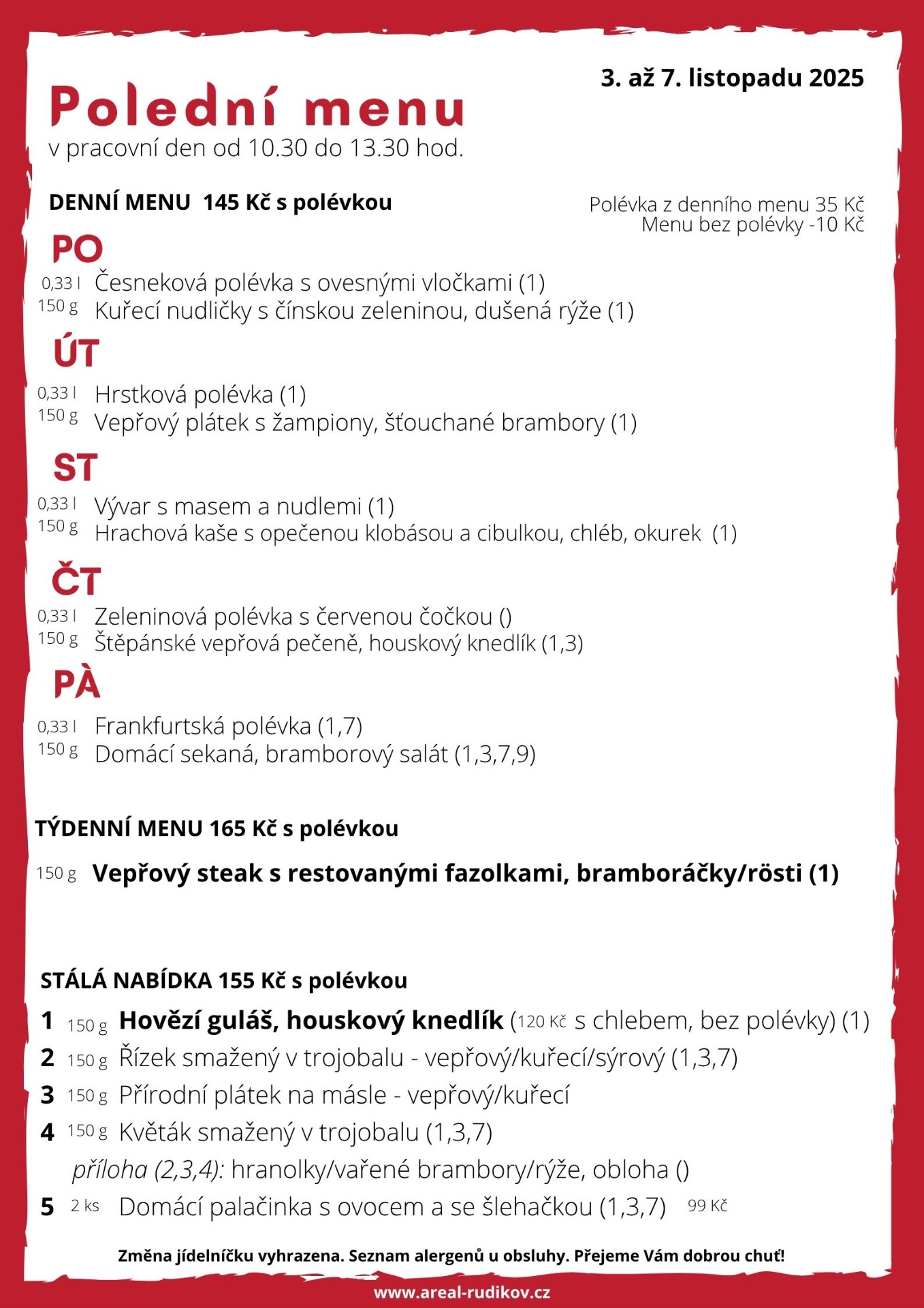 ... menu, čerstvé bagety, párek v rohlíku, ke kávě třeba zákusek ...
