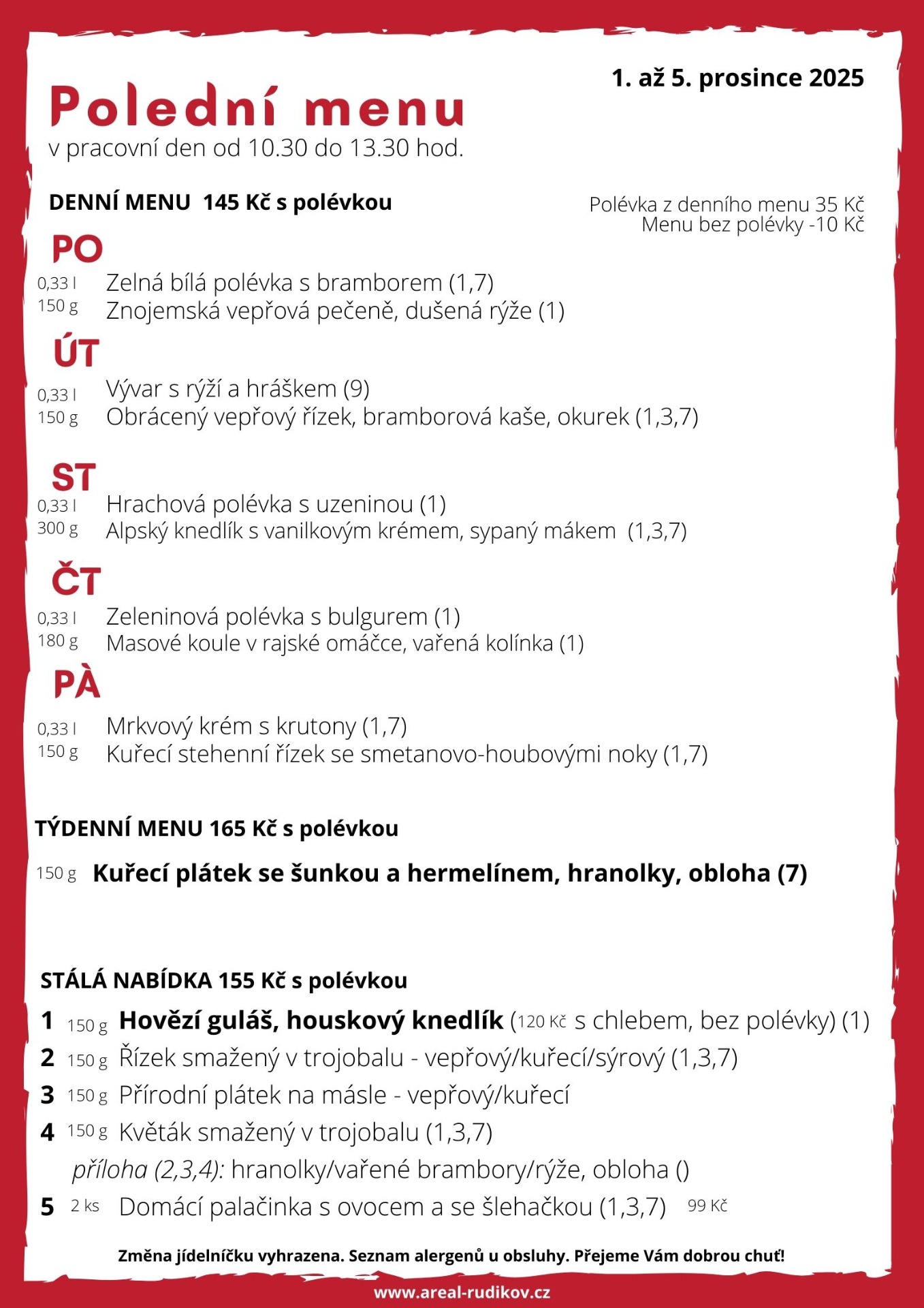 ... menu, čerstvé bagety, párek v rohlíku, ke kávě třeba zákusek ...