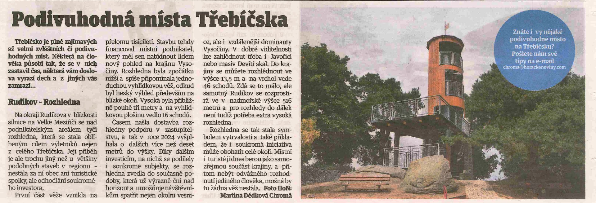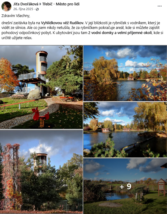 - Jako poděkování byli podporovatelé pozváni na slavnostní otevření vyhlídkové věže v Areálu obchodu a služeb Rudíkov s doprovodným programem, ukázkou techniky a občerstvením.